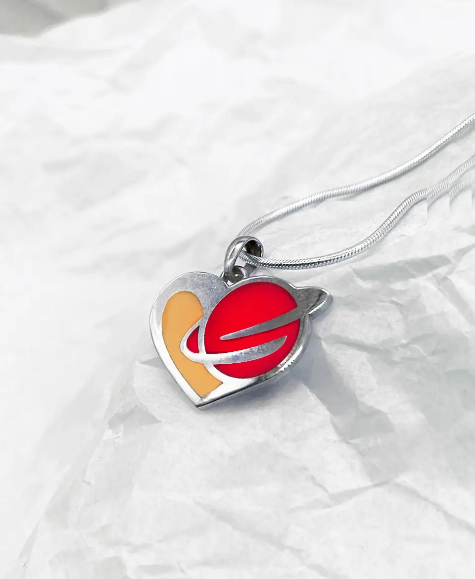 Ez a szív alakú medál a Petorial ikonikus formavilágát képviseli, melyet a végtelen univerzum ihletett.